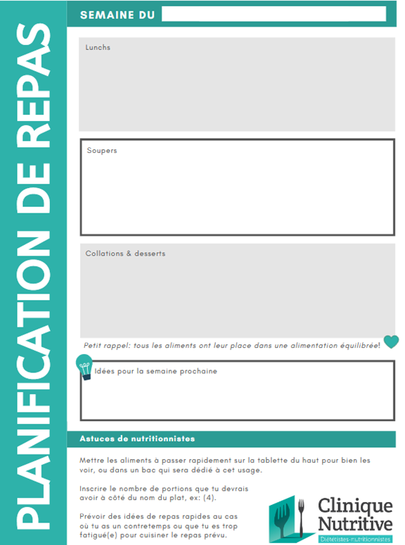Utilises notre joli planificateur de repas & notre liste d’épicerie intelligente pour t’aider à mieux préparer ta semaine! Tu as deux versions de liste d’épicerie: avec ou sans lignes. Choisis le modèle que tu préfères avant d’imprimer 🙂