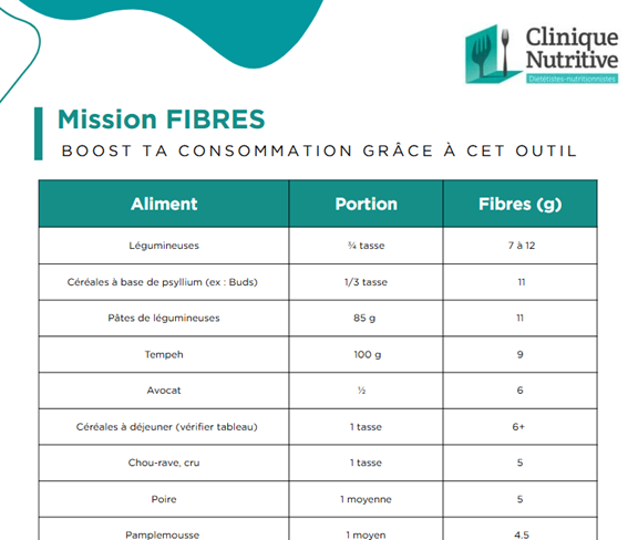 Notre top 30 des meilleures sources: un outil tout simple pour savoir quels aliments peuvent t’aider à faire le plein de fibres! Et en passant, ça sert pas juste à aller aux toilettes 😉 Elles sont hyper importantes pour: être soutenu.e plus longtemps après un repas, réduire les risques de diabète, nourrir notre flore intestinale, prévenir des cancers et des maladies intestinales, réduire le cholestérol… ça donne envie d’en manger plus hein?